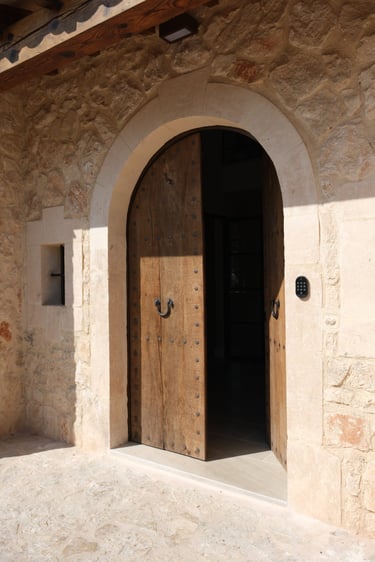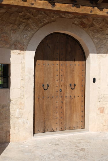 We create bespoke rustic doors crafted from rare antique wood sourced in the north of Spain, selected for its age, patina, and architectural character. Each door is made to measure in our workshop, where traditional techniques meet exacting standards of craftsmanship. We faithfully reproduce historic doors when required and design original pieces with the same respect for proportion and detail. Alongside our custom work, we curate an exclusive collection of authentic antique doors, each carrying its own history and presence.